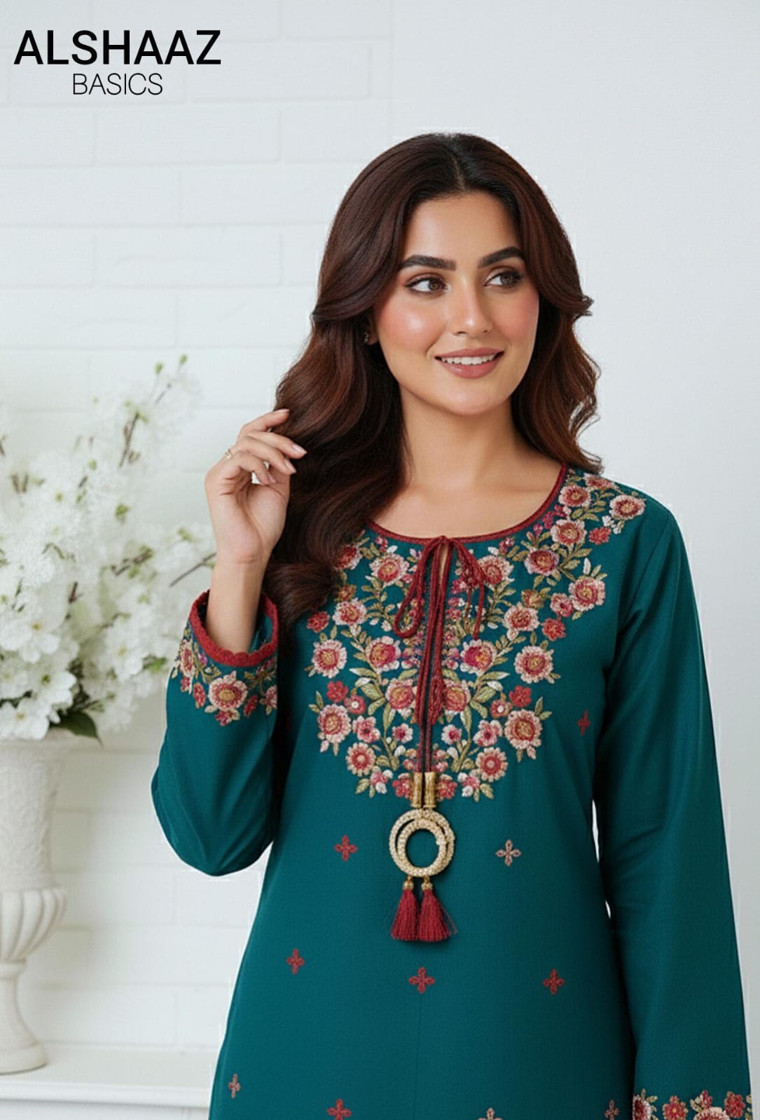 Refined yet effortlessly graceful, our Zinc Embroidered 2-Piece Set is designed to add a touch of sophistication to your wardrobe. The subtle zinc shade provides a modern, versatile base, while the floral embroidery along the neckline and sleeve borders enhances its charm with delicate detailing. Perfect for gatherings, casual wear, or semi-formal occasions, this outfit is both stylish and comfortable.